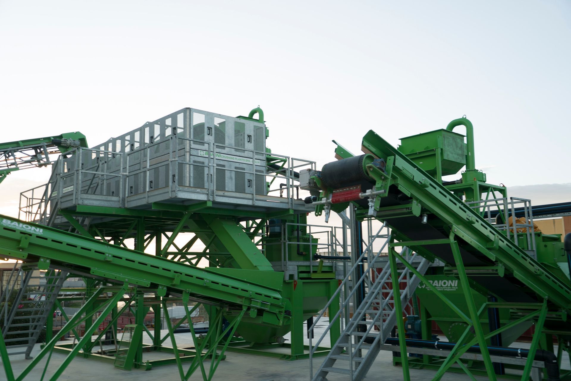 Il materiale viene alimentato tramite una tramoggia di carico, che garantisce dosaggio e continuità del flusso. In una prima fase avviene la separazione dei metalli ferrosi mediante nastro magnetico.