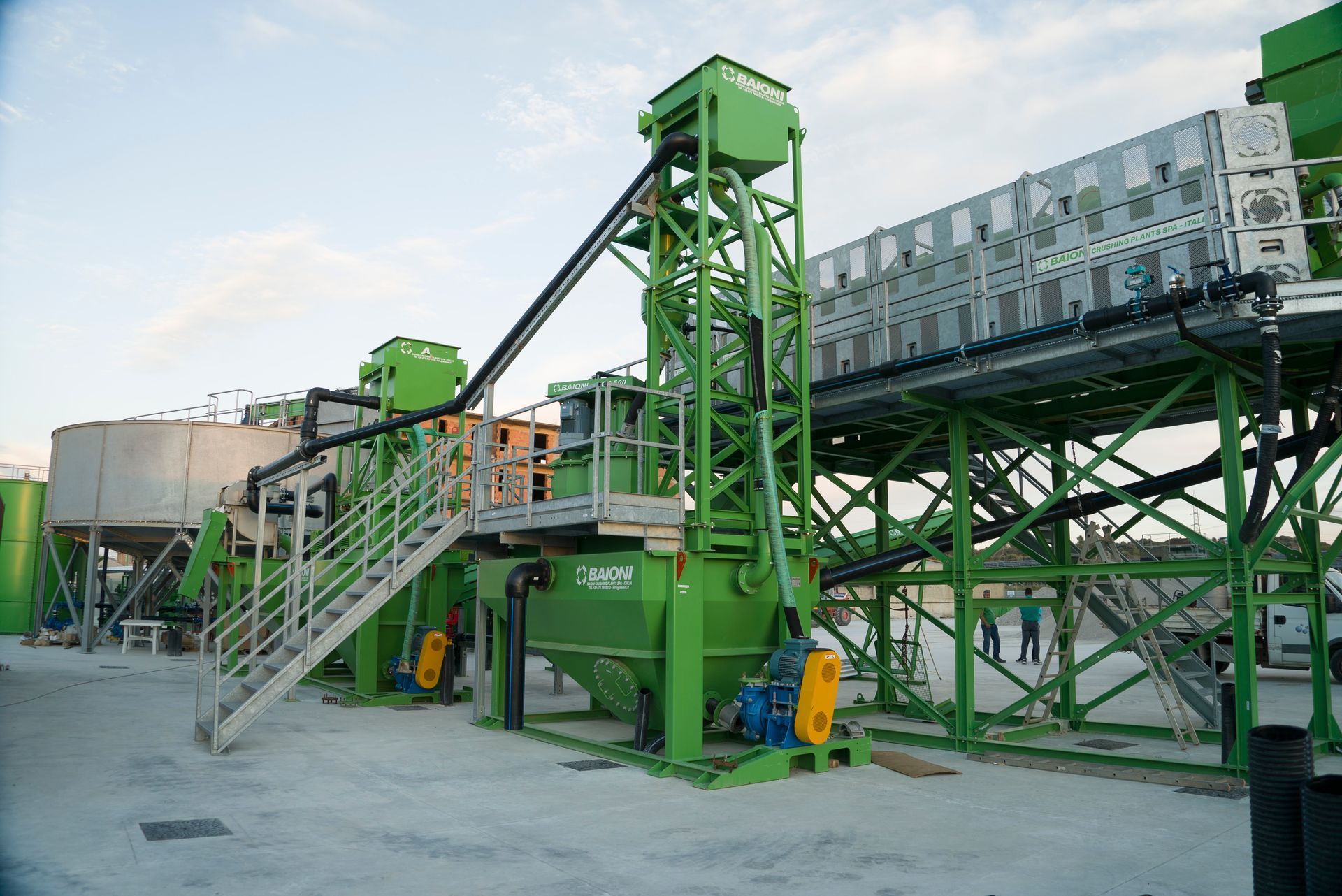 Le frazioni sabbiose vengono trattate attraverso gruppi di ciclonatura e celle di attrizione, che consentono: